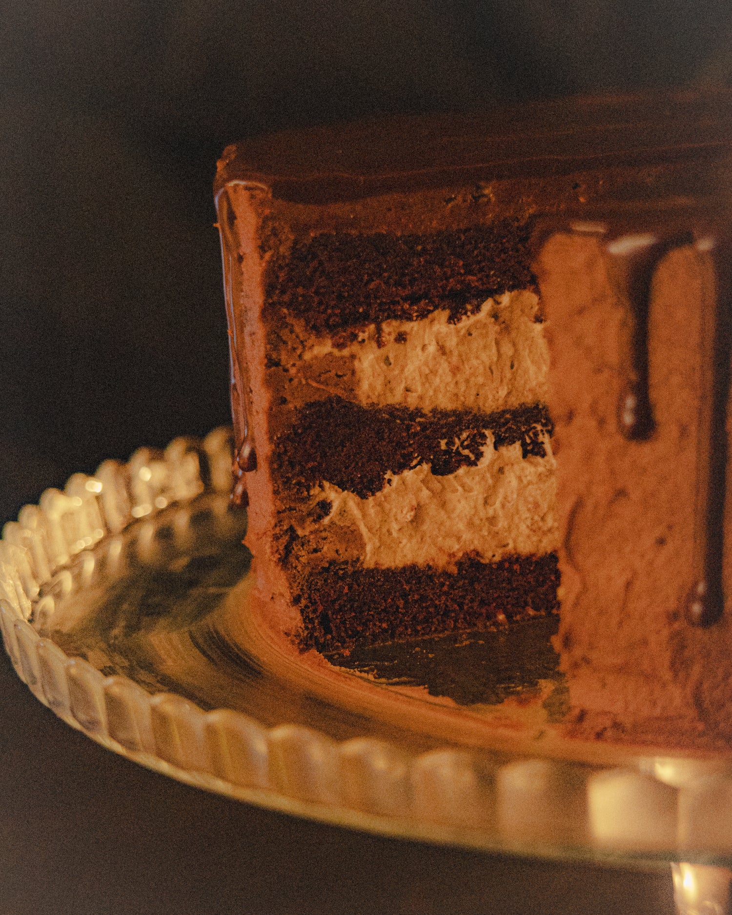 Brown Butter Malt Chocolate Frosting, Malt Hazelnut Cream Diplomat Filling, and Ganache Drip. Requires 48-72 hour window for ordering pickup at the Deli.