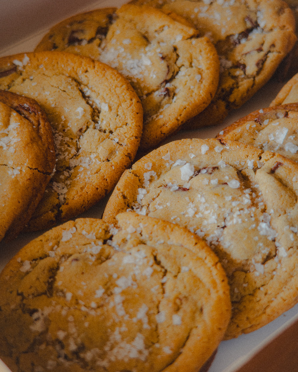 A dozen freshly baked chocolate chip cookies, perfect for sharing.