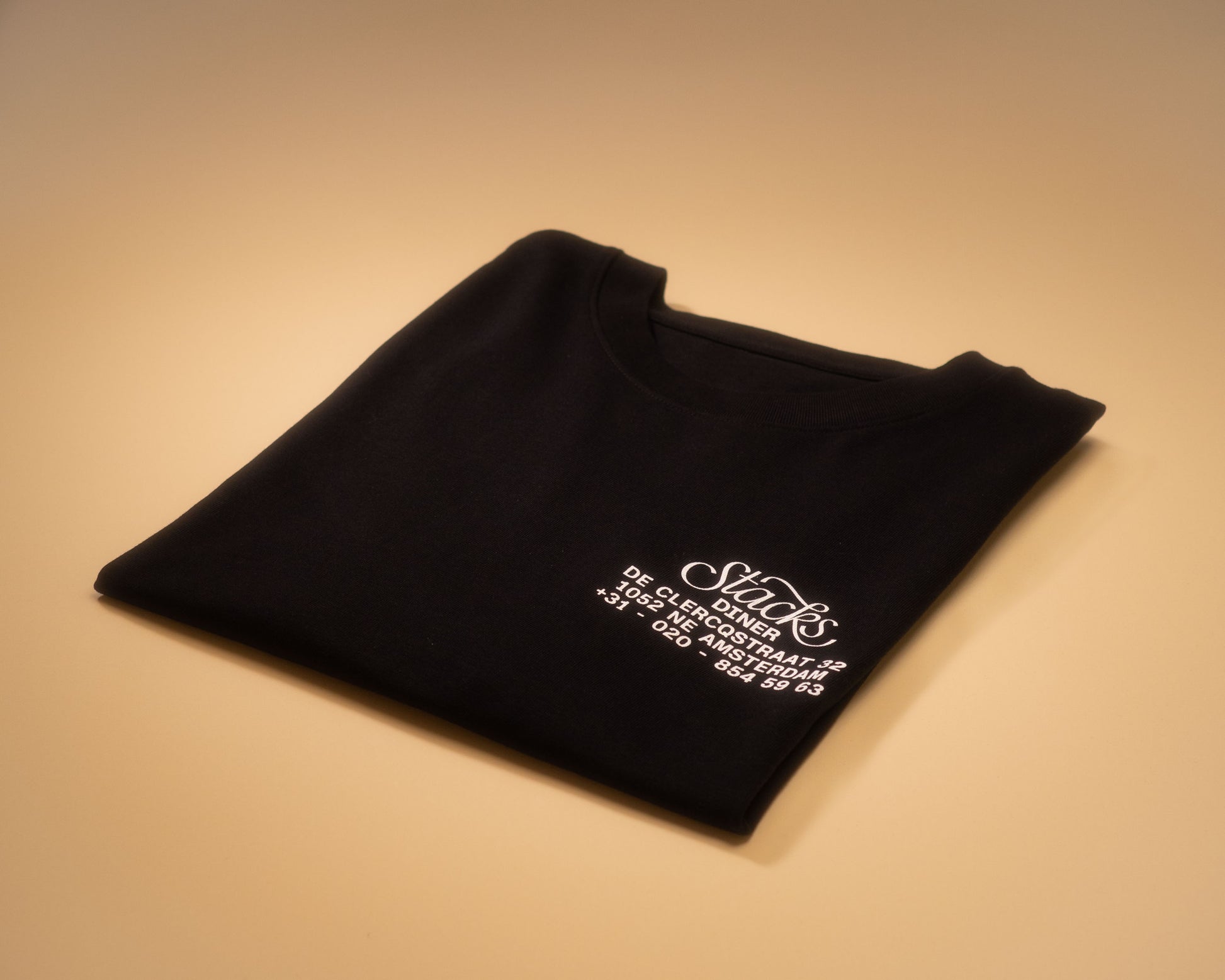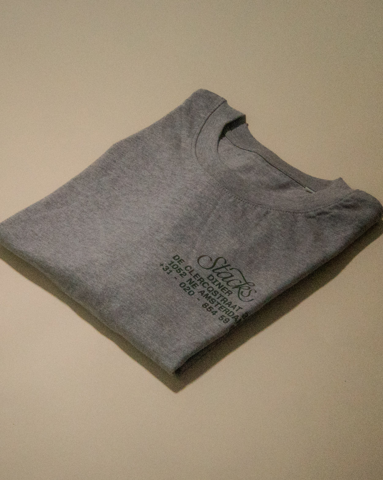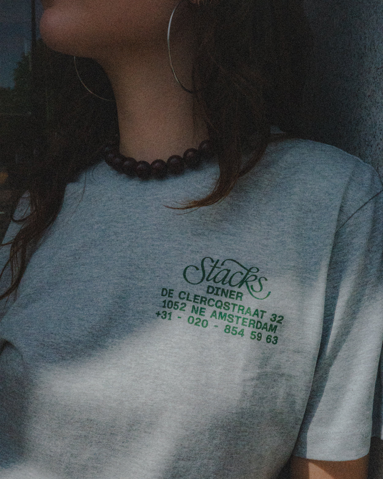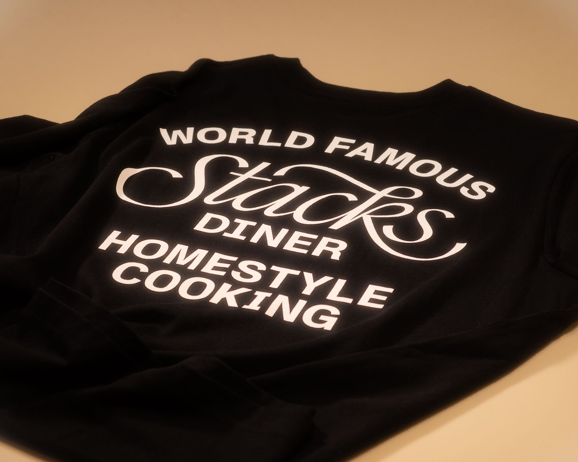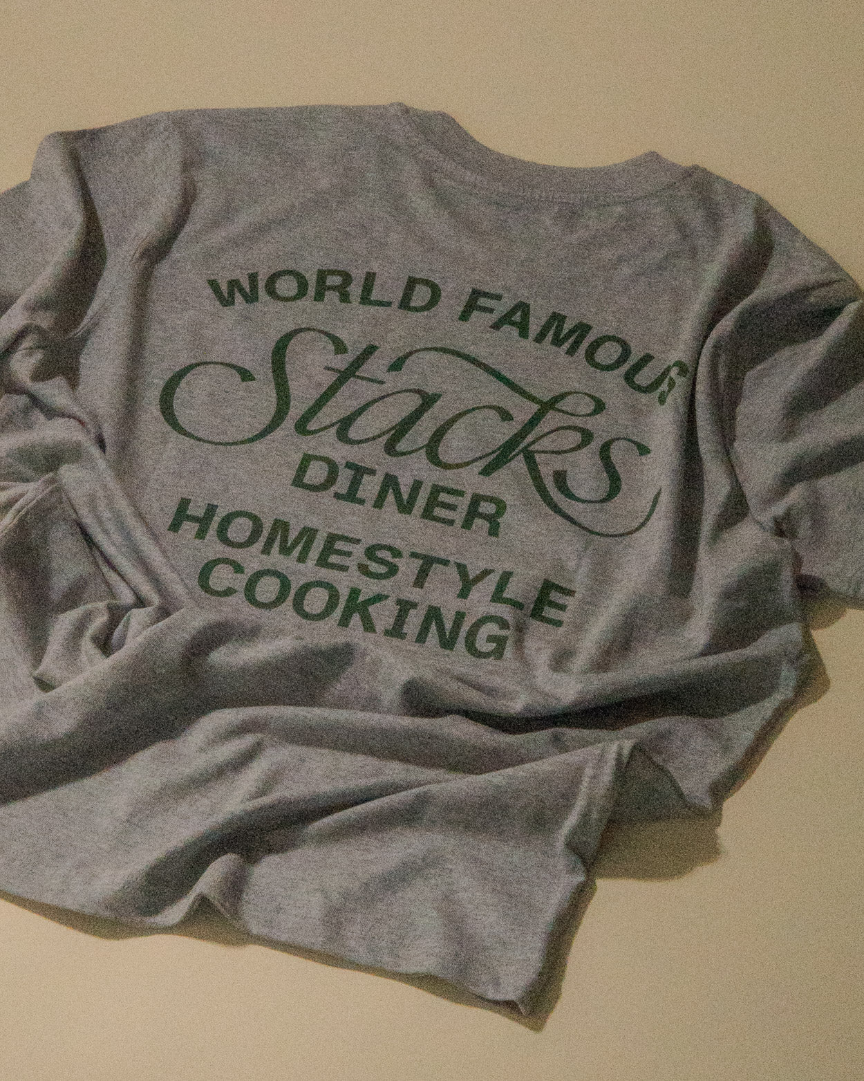 The Stacks Diner Tee features a comfortable relaxed fit, designed by Stacks Studio.