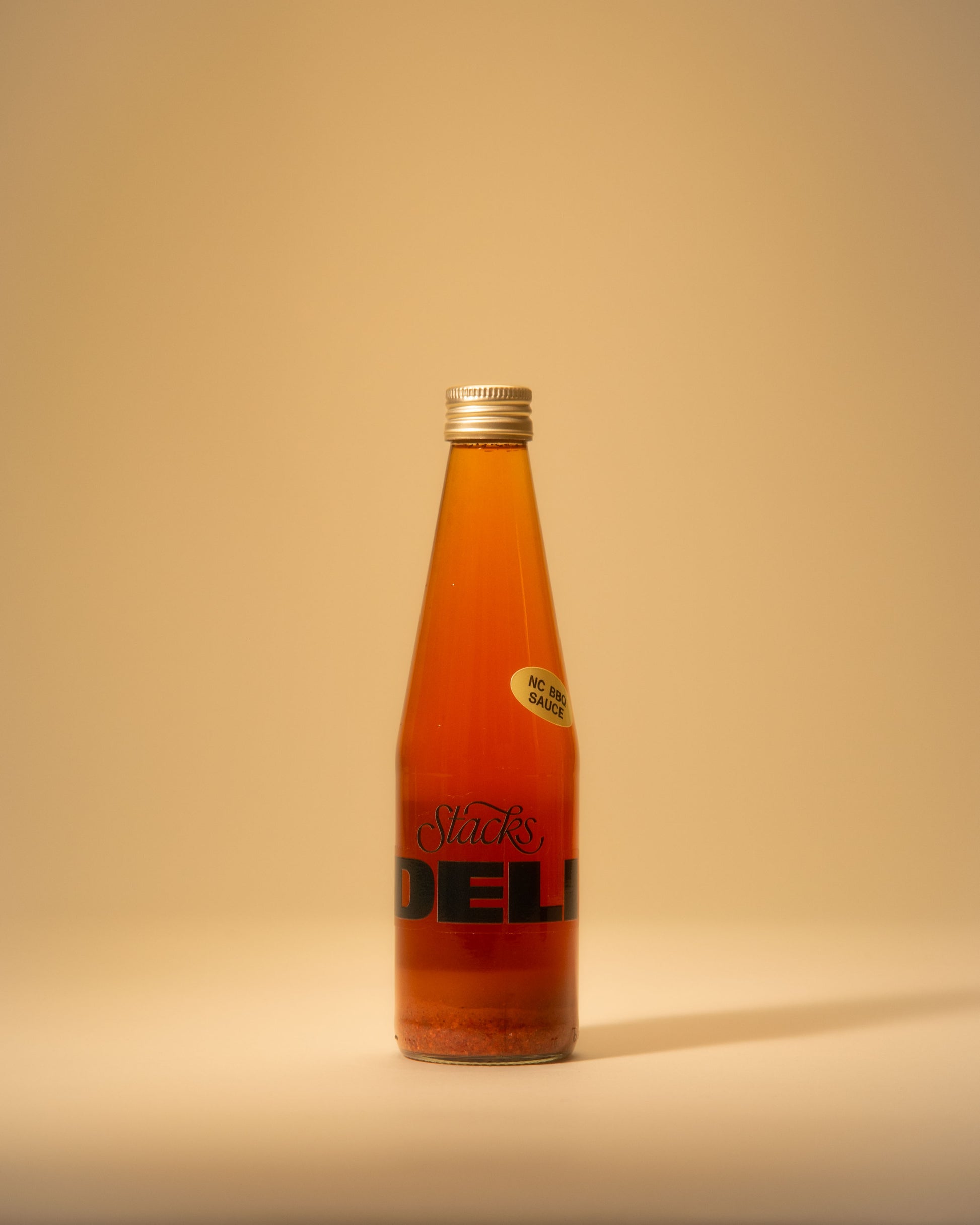 Apple Cider, White Vinegar, White & Brown Sugar, Salt, Black Pepper, Coriander Seed, Fennel Seed, Mustard Seed, Arbol, Aleppo, Guajillo, Achiote & Hot Sauce